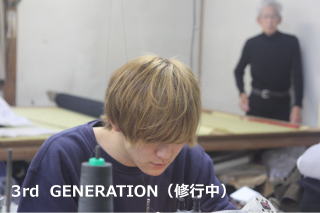 3rd GENERATION 3代目修行スタート 無事大学を卒業し、縫製へ道に進む意志も固く 縫製技術習得へ0からスタート! キッチリ技術の習得を進めてまいります! 近年技術者が、めっきり減りましたが、しっつかり後継者を育てます。 一生懸命がんばれ!!! |